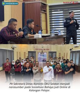 Plt. Sekretaris Dinas Komunikasi dan Informatika Kabupaten Ogan Komering Ulu Selatan, Hesmayudi, S.Kom., M.Si., menjadi narasumber pada Sosialisasi tentang Bahaya Judi Online di Kalangan Pelajar yang dilaksanakan oleh Polres OKU Selatan, Kamis (16/01/2025).