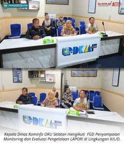 Kepala Dinas Komunikasi dan Informatika Kabupaten Ogan Komering Ulu Selatan, Zakiah, SE., MM., mengikuti FGD Penyampaian Monitoring dan Evaluasi Pengelolaan LAPOR! di Lingkungan K/L/D dari Ruang Vidcon Dinas Kominfo OKU Selatan, Jumat (24/01/2025).